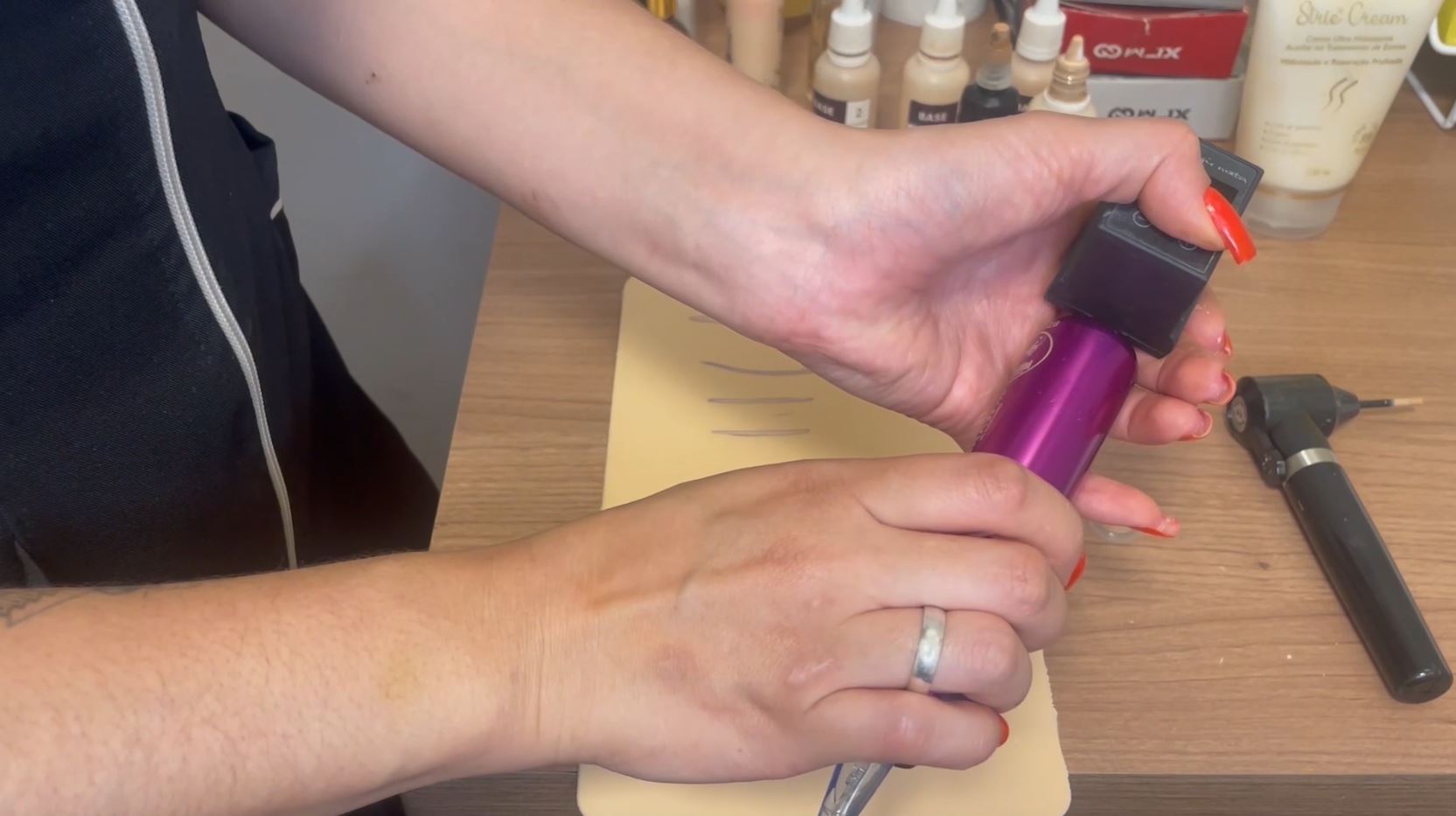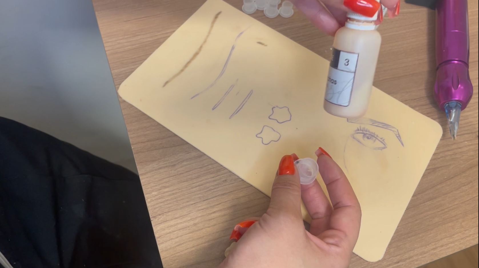 No curso, você aprende a fazer a mistura exata de pigmentos para atingir o tom de pele da sua cliente, junto a isso é preciso prestar atenção a profundidade da agulha